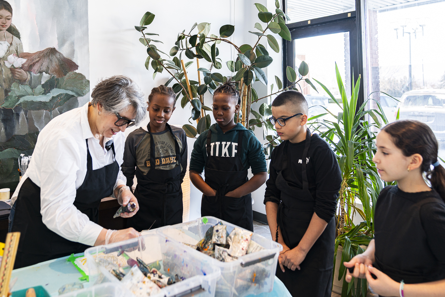 Les groupes sont volontairement petits pour que chaque enfant se sente en confiance et non jugé. Sabiha crée une ambiance bienveillante où même les enfants les plus réservés s'ouvrent naturellement à travers la création.